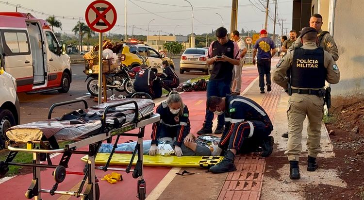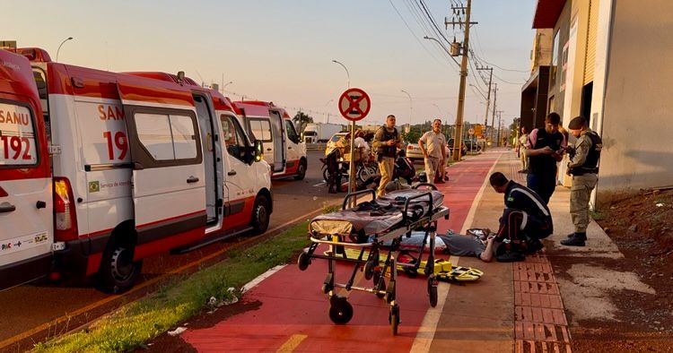 Um grave acidente envolvendo duas motocicletas resultou em quatro pessoas feridas na tarde desta sexta-feira (10), na Rua Maria Olímpia Jardim. Duas ambulâncias do Serviço de Atendimento Móvel de Urgência (SAMU) foram acionadas para prestar socorro às vítimas.
