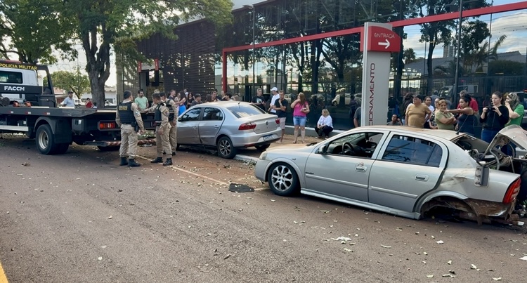 O condutor do Astra, que seguia no sentido Centro/Asa Leste com uma passageira, perdeu o controle da direção, subiu no canteiro central e colidiu violentamente contra uma árvore, sendo lançado em seguida contra um veículo Voyage estacionado.