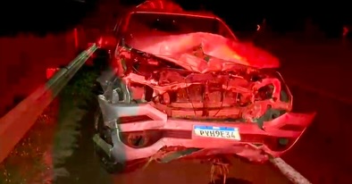 Segundo informações apuradas no local, o motorista da caminhonete teria se confundido ao acreditar que acessava um retorno da via, momento em que ocorreu a colisão. Com o impacto, o VW Santana acabou capotando, deixando um casal ferido.