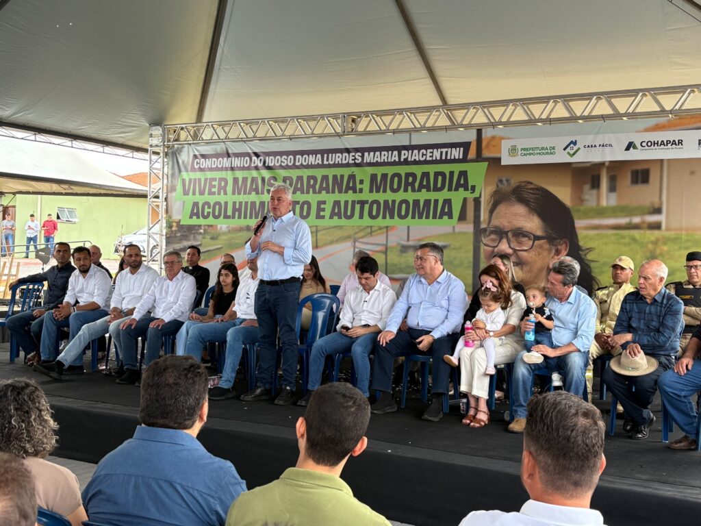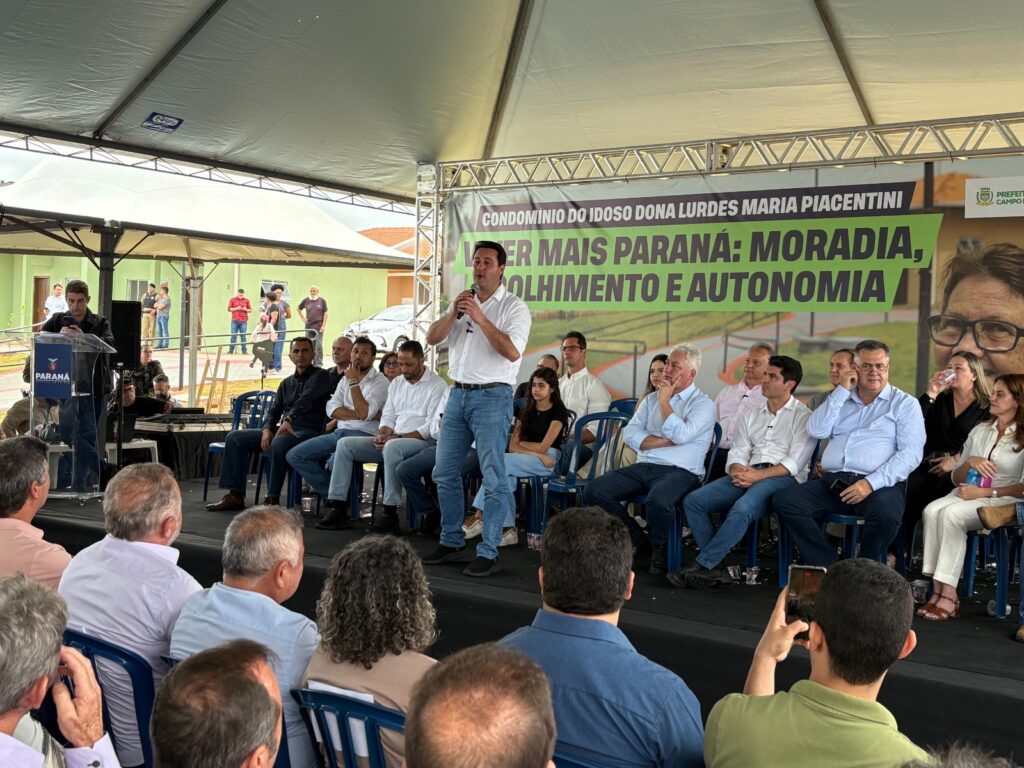 Campo Mourão ganhou, nesta quinta-feira (02), um novo espaço dedicado à qualidade de vida e ao bem-estar da terceira idade. O governador do Paraná, Carlos Massa Ratinho Júnior, inaugurou o Condomínio do Idoso Dona Lourdes Maria Piacentini, um projeto pioneiro do Governo do Estado, realizado por meio da Cohapar em parceria com a Prefeitura de Campo Mourão. O investimento ultrapassa R$ 8 milhões.