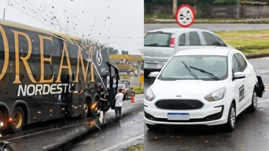 De acordo com informações colhidas no local, o condutor do Ford Ka tentava realizar um retorno na pista quando o veículo foi atingido na traseira pelo ônibus, que trafegava no mesmo sentido. Com a força do impacto, o carro chegou a rodar na rodovia, resultando em danos materiais consideráveis na parte posterior.