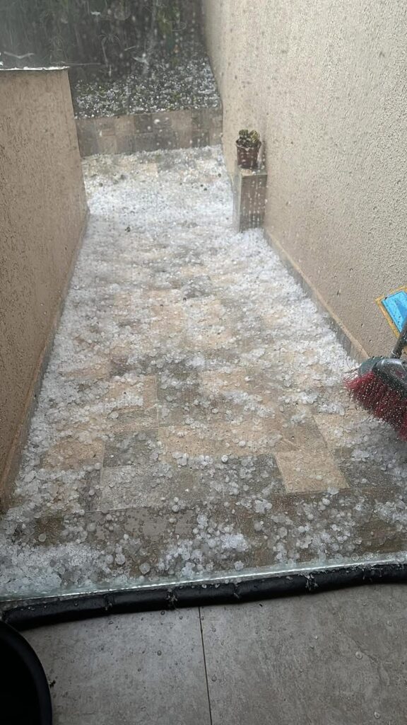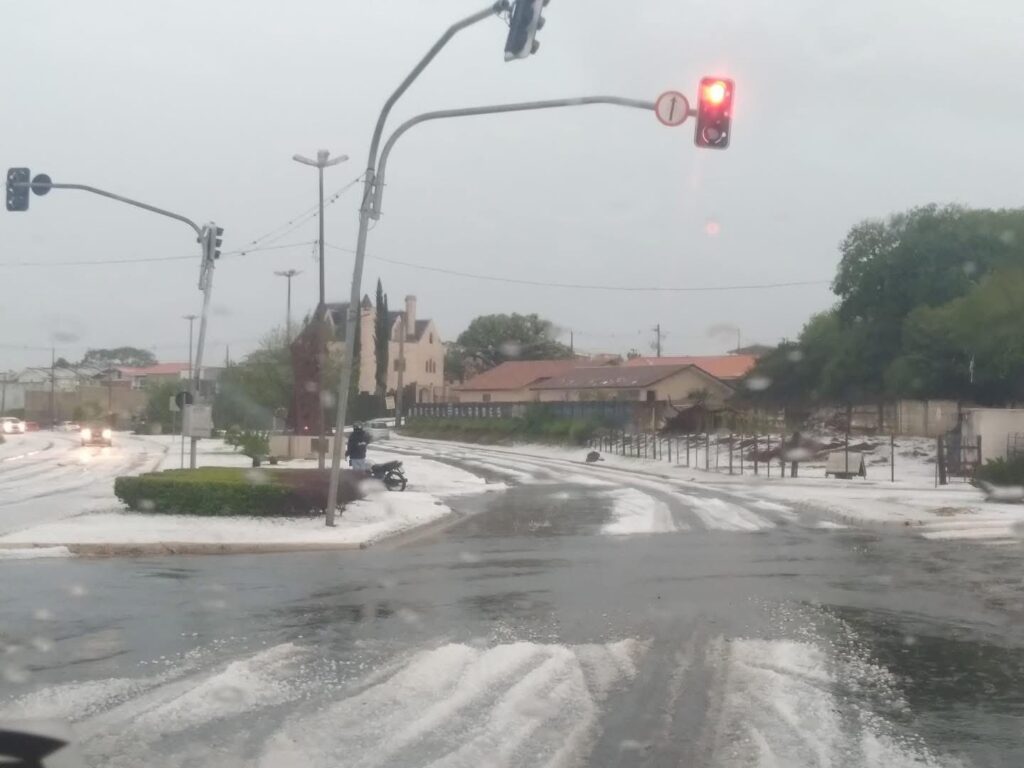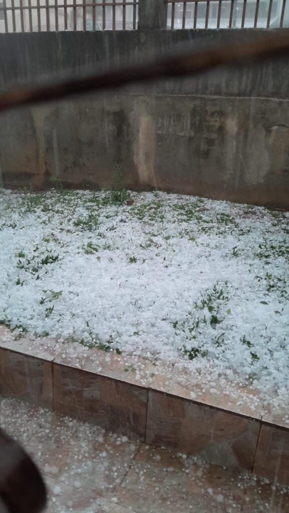 O impacto da chuva de granizo alterou momentaneamente a rotina e a aparência da cidade, com o gelo sendo o elemento dominante na paisagem urbana.