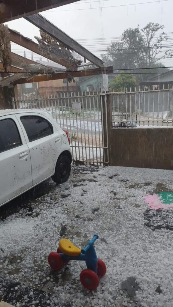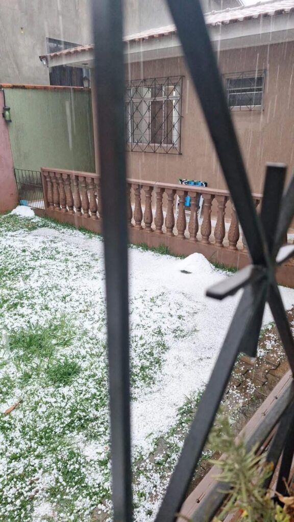 Uma chuva de granizo de intensidade incomum surpreendeu os moradores de Ponta Grossa, na região dos Campos Gerais, no início da tarde desta segunda-feira (25). O fenômeno, embora tenha tido curta duração, cobriu completamente ruas, calçadas e telhados com uma espessa camada de gelo, conferindo à cidade um visual atípico, semelhante a uma paisagem de neve.