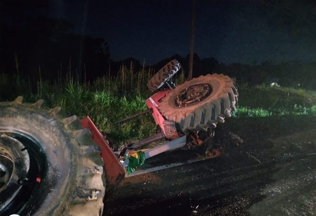 O incidente ocorreu quando uma caminhonete Toyota Hilux colidiu violentamente na traseira do trator que trafegava pela pista.