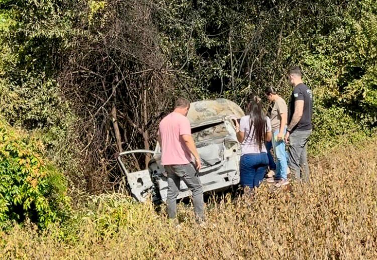 Durante o atendimento da ocorrência, as forças de segurança receberam a informação de um carro em chamas em uma plantação de soja nos fundos do Jardim Sol Nascente, em área rural do município. No local, foi constatado que o veículo era um Voyage branco, possivelmente o mesmo utilizado na ação criminosa. O automóvel será periciado.