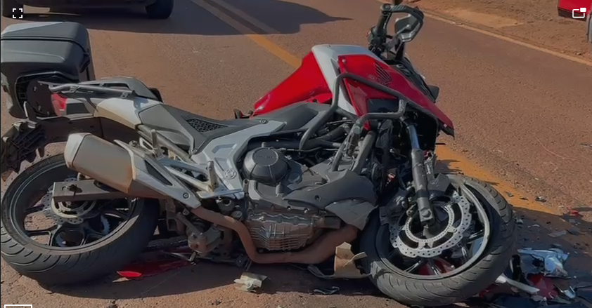 A força do impacto causou danos severos em ambos os veículos, deixando a motocicleta de alta cilindrada, completamente destruída. O motociclista sofreu multiplas fraturas e ferimentos graves.