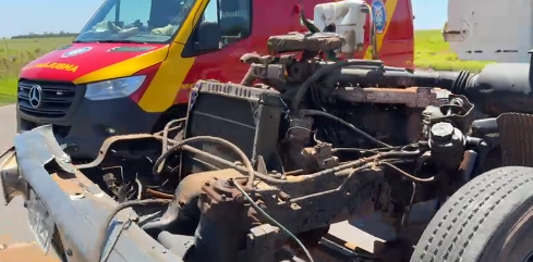 O motorista do caminhão caçamba foi prontamente socorrido pelas equipes do Corpo de Bombeiros e do Serviço de Atendimento Móvel de Urgência (SAMU). Apesar da cinemática grave do acidente, a vítima apresentava ferimentos, mas estava consciente e orientada no momento do resgate.