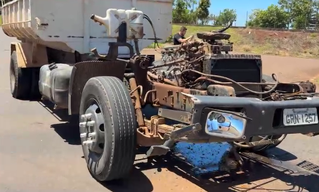O impacto foi extremamente violento, resultando no desprendimento da cabine do caminhão caçamba, que foi arrancada do chassi e arremessada sobre a pista, ficando completamente destruída.