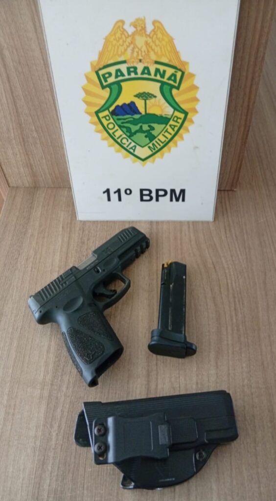 Durante o patrulhamento, o veículo foi localizado a cerca de 300 metros do destacamento policial e interceptado após uma breve tentativa de fuga. Na abordagem, a pistola foi encontrada no assoalho, próxima ao banco do motorista.