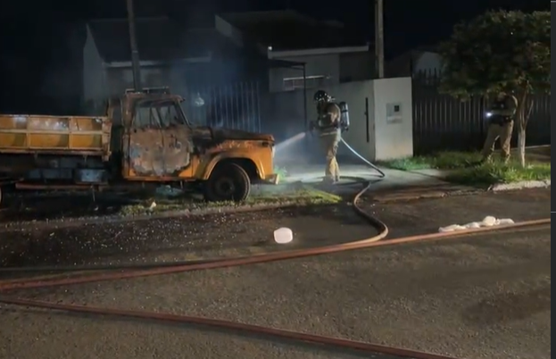 Um incêndio de origem suspeita mobilizou o Corpo de Bombeiros na madrugada desta segunda-feira (30), na Rua Ponta Grossa, no Jardim Tropical, em Campo Mourão. As chamas destruíram dois caminhões e uma motocicleta, além de atingirem parte de uma residência que estava vazia no momento do incidente.