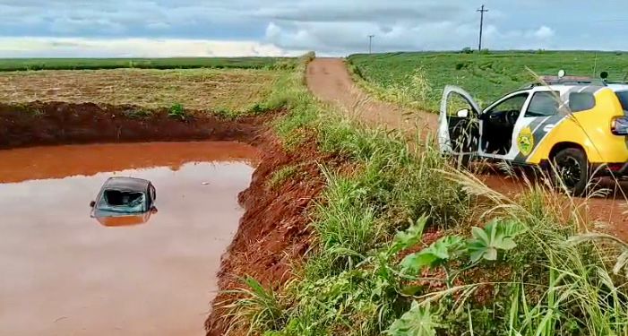 Motorista perde o controle e sai da pista em estrada rural no distrito de Ivailândia