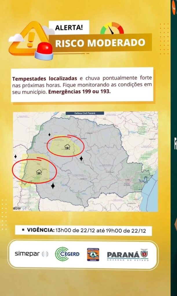 As temperaturas passaram de 30ºC em todas as regiões do Paraná neste domingo, 21 de dezembro, início oficial do verão. O tempo seguirá muito quente durante toda a semana, mesmo com registro de chuva até quarta-feira (24) no Oeste, Sudoeste e Centro-Sul. Na quinta-feira de Natal, 25 de dezembro, uma frente fria trará chuva para as outras regiões do Estado. Na sexta-feira (26) ainda há previsão de chuva, porém em condições típicas de verão: tempo abafado e chuva de curta duração principalmente durante o período da tarde, em todas as regiões do Paraná.
