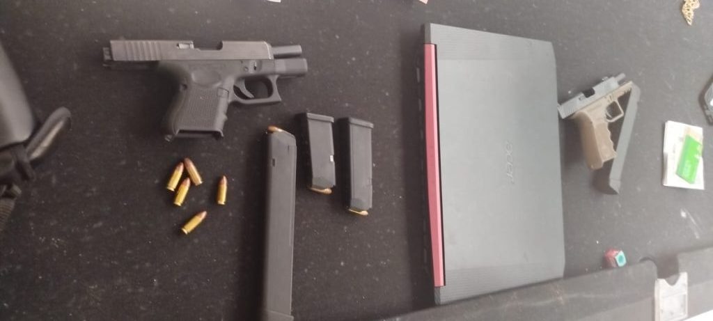 Durante o cumprimento das buscas, os policiais apreenderam um arsenal e itens que comprovam a atividade ilícita: