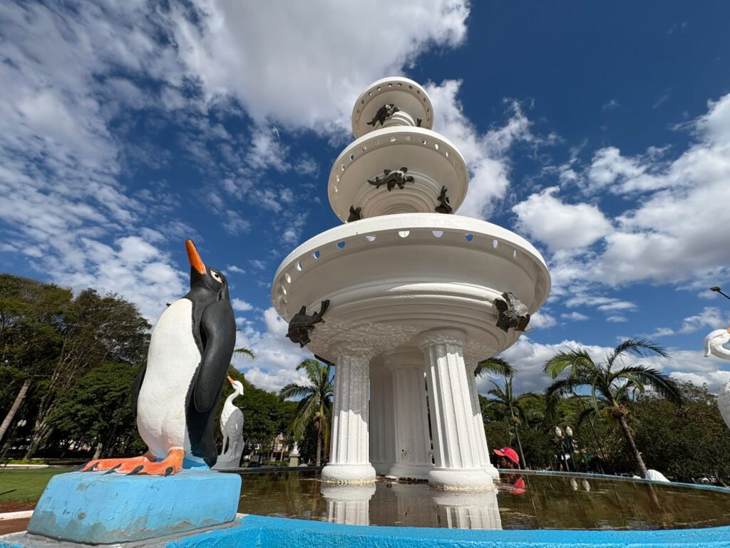 Tombado como patrimônio histórico municipal desde 1993, o Chafariz da Praça Getúlio Vargas é um dos marcos mais emblemáticos de Campo Mourão — e, possivelmente, o cenário mais fotografado da história da cidade. Desde ontem, quinta-feira, o monumento ganhou de volta um pedaço de sua memória: os dois pinguins ornamentais que haviam sido retirados durante a reforma de 2004.