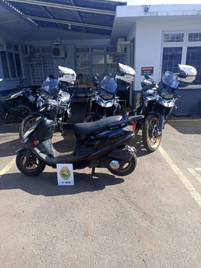Por volta das 12h30, durante patrulhamento tático pela região, os policiais avistaram uma motoneta preta sem placa, estacionada de forma irregular sobre a calçada. Devido à infração de trânsito e ao índice de furtos de veículos com essas características na localidade, a equipe iniciou a fiscalização.