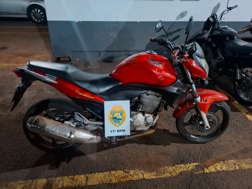 A Polícia Militar de Campo Mourão registrou duas ocorrências relevantes envolvendo motocicletas nesta segunda-feira (19). No início da noite, no Jardim Lar Paraná, um homem de 27 anos foi preso em flagrante após ser abordado com uma placa Mercosul falsificada. O acessório não possuía QR Code e apresentava padrões divergentes dos exigidos pelo Contran. O detido afirmou ter adquirido o veículo por R$ 5.000,00 através de um anúncio em rede social.