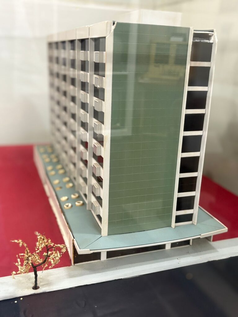A maquete do Edifício Antares, o primeiro edifício comercial de Campo Mourão, construído em 1986, também está em exposição no Museu. É um marco da verticalização e do desenvolvimento urbano da cidade. “Nosso Museu tem várias peças e obras raras, muito significativas para a história da cidade. Vale a pena fazer uma visita”, enfatiza o coordenador do Museu, Jair Elias dos Santos Junior.
