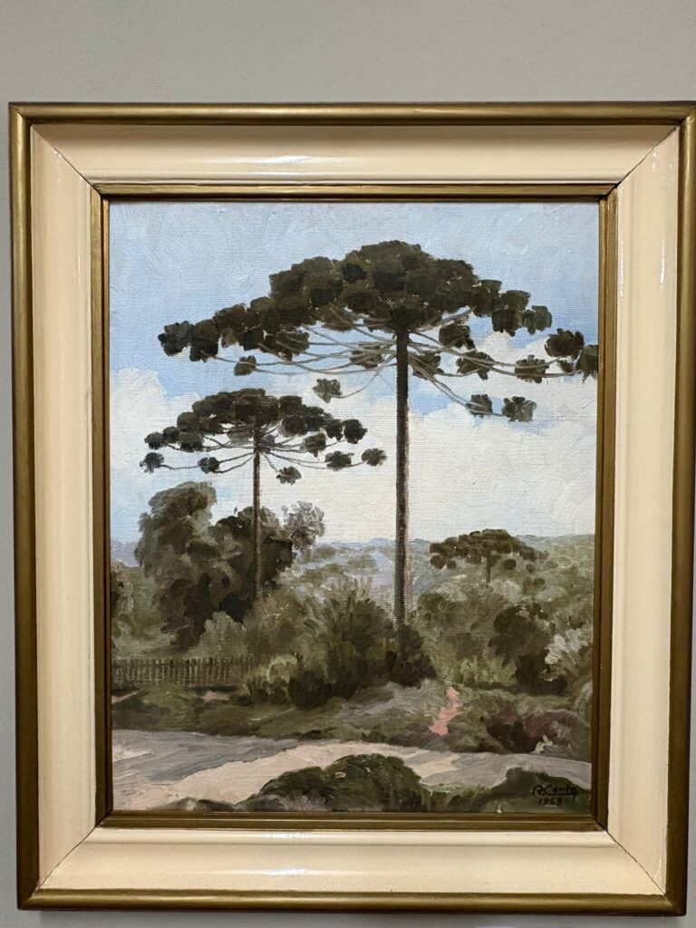 A arte também ocupa lugar de destaque com a tela “Arredores de Curitiba”, do pintor Augusto Conte, que retrata araucárias, símbolo do Paraná. A obra foi adquirida pela Câmara Municipal de Campo Mourão como forma de agradecimento ao artista pelo desenho da bandeira oficial do município.